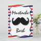 Tenha o divertimento com este convite do bigode. Aperfeiçoe para todos os tipos de partidos e de fundraisers. Aniversário, aniversário, jantar de ensaio, 16o, 2ø, 50th, sobre - monte, solteiro, bachelorette, Bar-Mitvah, fundo - o raiser, a caridade, o competiam, o baile de formatura, a dança, a ?a, o chá, o partido de galinha, o partido de veado, e o mais. O texto e a cor de texto podem ser mudados. Tenha o divertimento! Caracteriza um design vermelho, branco e azul do fundo do pólo do barbeiro.