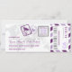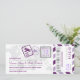 Uma passagem de embarque inspirou o convite do bilhete com detalhes do selo do passaporte do divertimento e listras do correio aéreo. Mostrado nas máscaras do roxo do Lilac, obscuridade roxa da ameixa - cinzas e luz - cinzas. O verso inclui o espaço extra para toda a informação do hotel, do viagem ou do Web site.