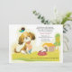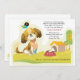 Este convite bonito é perfeito para a celebração do aniversário de uma criança. Caracteriza um filhote de cachorro, sua casa de cachorro, um osso em um prato e um pássaro de chilro empoleirado na cabeça do filhote de cachorro. O cartão é fácil de personalizar com seus fraseio, pia batismal, cor da pia batismal e escolha de seis tipos de papel.