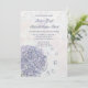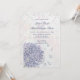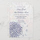 Este convite doce do casamento 5x7 tem uns azuis cobaltos escuros, um buquê floral do lilac do hydrangea roxo azul e macio da pervinca macia no inferior esquerdo com algumas pétalas que voam à direita. No fundo, há uma cor damasco desvanecida e as listras gráficas. Na parte superior, você pode facilmente personalizar a informação da cerimónia de casamento. Isto seria grande para um casamento do primavera ou do verão.