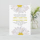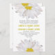 Um convite simples do casamento uma margarida na parte superior e uma margarida no fundo com metade de cada um que espreita para fora. Personalize o texto cinzento e amarelo entre margaridas com detalhes de seu casamento. Características do lado oposto que combinam o design. Personalize com os nomes dos noivos. O convite representado está no Livro Branco do reciclado. Artigos de harmonização Look for do "na categoria da loja casamento" da loja cor-de-rosa da escola.