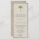 Um convite do casamento que combina a textura da serapilheira com uma imagem praia-temático da palmeira. Aperfeiçoe para um casamento de praia.
