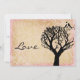 A parte traseira do convite tem uma silhueta preta da árvore com os pássaros do amor na árvore junto com a palavra "amor" no roteiro. Estes são grandes anúncios do casamento para casamentos vintage, casamentos do país, casamentos do jardim, casamentos exteriores, casamentos do pomar, e todo o casamento com um tema do pássaro do amor. Apenas use os modelos para preencher seus detalhes do casamento, ou você pode usar "personaliza-o" botão para mudar o tamanho ou o estilo de pia batismal, move-o coisas ao redor, adiciona-o mais texto ou suprime-o de artigos.