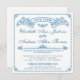 Este anúncio azul bonito do casamento é perfeito para tradicional, formal, rústico, ou o casamento vintage. A bandeira e o quadro do rolo têm um motivo da folha. A parte traseira tem um lugar para seu monograma. Personalize com seu próprio texto. Verifique por favor minha loja para ver se há as cores diferentes e artigos relacionados que combinam este cartão. Não vêem a cor que você gosta? Contacte-me. Ilustração original pelo pj_design/jammydesign.