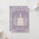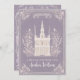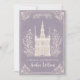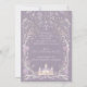 Um convite de chá de panela roxo lavanda bonito com um belo castelo de conto de fadas na frente e uma borda floral caprichosa no verso com as informações do seu evento. Adorável para um evento temático da Rapunzel.