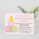 Convite do chá de fraldas com Duckie e blocos de