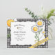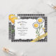 Este convite da margarida e da abelha da bolha manda margaridas na parte dianteira e na parte traseira com minúsculo bumble as abelhas que voam em torno das flores. O fundo é guingão preto e branco.
