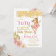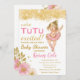 Seus convidados serão tutu excitado sobre este chá de fraldas com este convite! Bebê bonito da bailarina do estilo do vintage das características no tutu cor-de-rosa com acentos do ouro do brilho e a decoração floral.