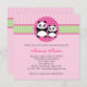 Sugestão e convite moderno do chá de fraldas. Características mamã e urso de panda do bebê. Uma combinação de padrões dá a este cartão um olhar do divertimento. Paleta de cores cor-de-rosa e verde.