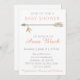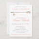 Este cartão do chá de fraldas é projetado com uma pia batismal cinzenta e cor-de-rosa. É infundida no design uma seta tribal elegante com penas. Este convite do chá é elegante e moderno e faria um grande convite para aquele mamãe-à-estar.