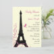 Uma torre Eiffel alta e elegante decora este convite do chá de fraldas. As máscaras bonito do rosa, e o acento francês extravagante do roteiro o irrisório de seu evento. Este convite é mostrado no papel básico; contudo, eu recomendo o peso e a textura do papel de linho.