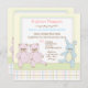 Deixe seus convidados saber que as objectivas triplas estão na maneira com este design original adorável. Dois ursos de ursinho cor-de-rosa peluches e um coelho azul doce decoram este convite bonito do chá que é projetado especialmente para um chá da objectiva tripla.
