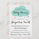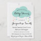 Para um chá verdadeiro! Estes convites neutros do chá de fraldas do género caracterizam um tema da gota da chuva do brilho em um arco-íris de cores macias do bebê.