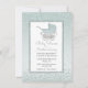 O convite glamoroso e moderno do chá de fraldas feito em um ombre do verde da hortelã com falso brilha, ao longo da parte superior e da parte inferior. Uma área de texto moldada brilho é decorada, na parte superior, com uma carruagem de bebê colorida da hortelã verde glittery. Personalize todo o texto para seu chá de fraldas.