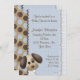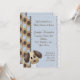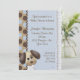 Nosso convite do chá de fraldas do cão de filhote de cachorro mostra-o que morde uma parte fora do papel e vem-no em pontos do poka com xadrez azul e fundo marrom. Este design igualmente vem no porte postal e nos outros artigos do presente combinar.