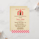 Convite do chá de fraldas com tema do carnaval e fundo marrom rústico.