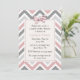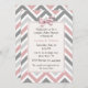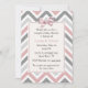 Convite do chá de fraldas do casal à moda feito em umas cinzas modernas, em um branco, e em um teste padrão de ziguezague rosa pálido da viga. Os gráficos de uma área de texto branca, com um ponto cor-de-rosa como a afiação e um arco cor-de-rosa, no superior terminam fora este grande convite de vista. Personalize o texto preto e cor-de-rosa para serir suas necessidades do evento. Convite que bonito o casal amará.