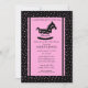 Comece seu evento fora do direito com nosso convite bonito & na moda do chá de fraldas que caracteriza o cavalo de balanço preto & cor-de-rosa o mais bonito preta & cor-de-rosa fundo pontilhado em uma polca. Apenas personalize com sua informação e você é todo ajusta-se para ir! Artigos de harmonização que incluem o porte postal do chá de fraldas, etiquetas do favor, obrigado carda-o & agradecem-n que a as etiquetas estão igualmente disponíveis em nossa loja.