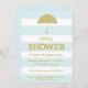 Este convite moderno caracteriza um guarda-chuva do brilho-olhar e um fundo subtil da listra azul.