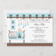 Comece seu evento fora do direito com nosso convite bonito do chá de fraldas do menino que caracteriza a cena da sala de um bebé com uma ucha, uma imagem da estrela, uma imagem do barco e umas estrelas. Convite muito na moda do chá de fraldas no azul & no marrom. Apenas personalize com sua informação e você é todo ajusta-se para ir! Artigos de harmonização que incluem o porte postal do chá de fraldas, etiquetas do favor, obrigado carda-o & agradecem-n que a as etiquetas estão igualmente disponíveis em nossa loja. estúdio do cacau do ©