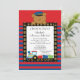 Comece seu evento fora do direito com nosso convite bonito do chá de fraldas do menino que caracteriza um trem do bebê & uma trilha do trem com um urso do condutor em vermelho & em azul. Apenas personalize com sua informação e você é todo ajusta-se para ir! Artigos de harmonização que incluem o porte postal do chá de fraldas, etiquetas do favor, obrigado carda-o & agradecem-n que a as etiquetas estão igualmente disponíveis em nossa loja. Design de Zenware do ©