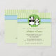 Sugestão e convite moderno do chá de fraldas. Características mamã e urso de panda do bebê. Paleta de cores verde e azul.