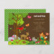 Convite do chá de fraldas que caracteriza animais tirados mão da floresta, da árvore, das borboletas, e do pássaro vermelho no fundo marrom. Para trás do convite são as bolinhas verdes. Fácil personalizar; apenas substitua o texto fornecido com sua informação desejada. Este convite pode igualmente ser usado para a festa de aniversário.
