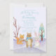 Cena com um fundo nevado, tema moderno do inverno do partido de chá de fraldas do país das maravilhas do inverno com animais da floresta: esquilo, urso e coelho na neve. Há galhos marrons nos lados com uma árvore azulada do inverno. Aperfeiçoe para qualquer celebração ou chá de fraldas do inverno. Personalize com sua informação que do partido todo o texto é inteiramente customizável.