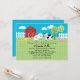 Convite bonito e colorido do chá de fraldas com um tema da fazenda. Caracteriza animais de fazenda adoráveis, um celeiro vermelho, árvores e uma cerca escolhida em um fundo verde-claro e das bolinhas do azul. Este design unisex ajustará o tom para um chá memorável. Adicione seu próprio fraseio.