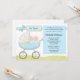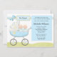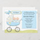 Convide convidados a um chá de fraldas dos gêmeos com este convite azul adorável do chá de fraldas do carrinho de criança. Alguns elementos por www.nitwitcollections.com licenciam #41088. Este cartão azul bonito caracteriza um bebé adorável em um carrinho de criança.