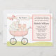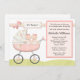 Convide convidados a um chá de fraldas dos gêmeos com este convite cor-de-rosa adorável do chá de fraldas do carrinho de criança. Alguns elementos por www.nitwitcollections.com licenciam #41088. Este cartão cor-de-rosa bonito caracteriza gêmeos adoráveis do bebé em um carrinho de criança.