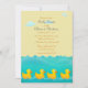 Sacudindo-se em uma piscina de água, quatro poucos patos de borracha flutuam em seguido. Um design adorável apenas perfeito para um convite do chá de fraldas.