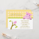 Este partido de chá de fraldas 5x7 convida tem um pássaro cor-de-rosa bonito em um ramo e um hipopótamo cor-de-rosa que espreita sobre e que sorri. Há bolinhas amarelas no fundo. Você pode facilmente personalizar este com sua informação do partido. Isto é feito para um partido do bebé. Estúdio do cacau