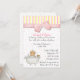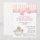 Convite bonito do chá do bebé, feito em cor-de-rosa, em branco, e em amarelo, com bolinhas, listras e um arco cor-de-rosa grande. Trabalhos de arte adoráveis do país de um bebê em uma banheira à esquerda o lado de inferior esquerdo. Personalize o texto para serir suas necessidades do partido de chá. Selos adoráveis do convite, da harmonização, etiquetas do envelope e envelopes disponíveis.