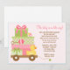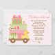 Este convite bonito do chá de fraldas caracteriza presentes cor-de-rosa e verdes do bebê e uma borracha ducky em um vagão. Este convite moderno e do divertimento do chá de fraldas é perfeito para que toda a mamã seja.