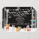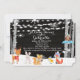 Comemore esse bebé! Cena rústica do inverno com o tema de madeira preto do fundo, o elegante, o moderno e do inverno da grão do país das maravilhas de chá de fraldas do partido que caracteriza flocos de neve, neve, luzes da corda, animais da floresta e árvores de vidoeiro. Os animais cervos da floresta, coelho, esquilo, raposa, pássaro, estão na neve. Há uma coruja na árvore com uma bandeira azul que leia, "ele está um menino!" Aperfeiçoe para celebrações & chás de fraldas do inverno. Personalize com sua informação que do partido todo o texto é inteiramente customizável.