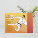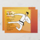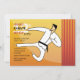 Um convite perfeito para a celebração do aniversário do seu entusiasta das artes marciais - seja karaté, Kung Fu, Tae Kwon faz ou apenas um guerreiro de Ninja. As características de design aquecem tons da cor e um instrutor legal com um cinturão negro. O cartão é fácil de personalizar com seus fraseio, pia batismal, cor da pia batismal e escolha de seis tipos de papel.