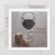 Um vidro do vinho tinto e de uma foto do bulbo do alho como um convite do comensal para alguma ocasião.