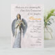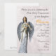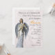 Um anjo de prata bonito que mantem uma cruz contra ela é caixa é a única decoração para este primeiro convite do comunhão do azevinho. O fundo está em tons cor-de-rosa e alegres muito claros. Eu escolho um papel de linho para um olhar mais elegante. É totalmente customizável.