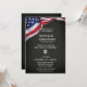 Celebre este Momento Marcante com este Convite de Lousa para Graduado da Academia de Polícia com Bandeira Americana. Este design apresenta uma bandeira americana, um distintivo de polícia, fundo de lousa e todos os detalhes da festa para o graduado da academia. Deixe a celebração começar enquanto você homenageia este graduado orgulhoso.
