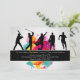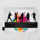 O convite perfeito para um atleta de qualquer idade. O cartão tem cinco silhuetas jogando beisebol, golfe, futebol, basquete e correndo. Um salto de cores brilhantes cria o fundo.