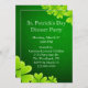 Convite de festas à moda do dia de Patrick de santo feito em um verde no fundo floral do trevo pálido verde. Os trevos do verde de uma cor mais clara decoram o inferior esquerdo e os cantos direitos superiores. Personalize todo o texto branco para serir suas necessidades do evento.