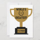 Este convite apresenta as palavras "Pai Mais Incrível do Mundo" exibindo uma fonte negrito de anuário com letras pretas mais uma coroa de vencedor com o número 1 no centro sobre um troféu estilo flat dourado em uma base preta neste tema do Dia dos Pais. Impresso em um papel clássico, com 17,5 pt de espessura e acabamento fosco não revestido com textura de casca de ovo, feito e impresso nos EUA com "Pai Mais Incrível do Mundo" impresso no verso.