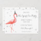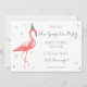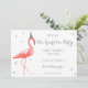 Deixe-nos flamingle! Convite de festas moderno e brilhante da véspera de Ano Novo que caracteriza um flamingo engraçado que veste acima o chapéu do partido.