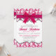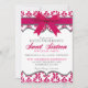 Este convite de aniversário feminino, sparkly do doce dezesseis caracteriza um fundo da cor damasco do brilho do rosa quente com uma fita e um arco cor-de-rosa brilhantes que acentuam a parte superior. Disponível em cores feitas sob encomenda.