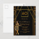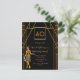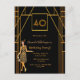 Ouro falso elegante e sorvete para uma festa de aniversário de 40 anos! Um convite de aniversário do estilo Deco de arte em ouro falso e preto para uma celebração glamourosa. Decorada com uma garota de flapper estilo 1920 na frente. Modelo a idade de 40 anos, nome e informações de sua festa.