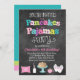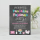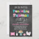 Nossos originais, êxitos de vendas, panquecas & pijamas o convite de aniversário do estilo que do quadro é o perfeito convidam para todas as panquecas e partido do tema do pijama. Nossas características de design um fundo do quadro, uma mistura de letras de teste padrão do divertimento tais como bolinhas, listras e viga, deslizadores do coelho, uma pilha de panquecas, a garrafa de leite e uma viga cor-de-rosa descansam que podem ser personalizados com monograma ou idade da sua criança.