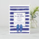 Tendo uma praia ou uma festança da piscina? Esta toalha azul e branca com chinelos é perfeita para recolher amigos pela piscina! (<a href='http://www.freepik.com/free-vector/striped-summer-card-with-flip-flops_1112955.htm'>Projetado por Freepik</a>).