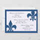 Estes convites intemporais do evento da flor de lis em azul escuro são perfeitos para todo o evento dos chás de panela aos jantares de ensaio. Os convites caracterizam dois símbolos azuis profundos da flor de lis colocados ao esquerda e direito do convite com uma beira azul. Preencha o modelo com sua informação de evento. O clique "personaliza-a" para fazer umas mudanças mais extensivas à colocação da pia batismal e do texto.