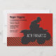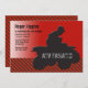 Um convite desportivo de ATV que caracteriza a imagem da silhueta de um ATV e de um ridder contra um fundo vermelho do inclinação e uma superfície de estrada preta e vermelha jazzístico do teste padrão. O cartão é fácil de personalizar com seus fraseio, pia batismal, cor da pia batismal e escolha de seis tipos de papel.
